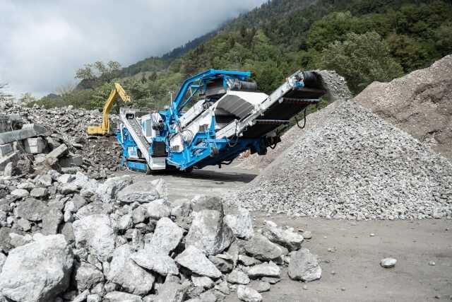 Dabei konnten gemeinsam spezielle Anlagenkonfigurationen optimal an den erforderlichen Einsatz und Bedürfnisse angepasst werden. So kann durch die Vorsiebmaschine mit einer Sieblänge von 3 m und mit den im Überkornmaterial und im Unterdeck aufgebauten Windsichter eine Qualitätssteigerung der aufbereiteten Gesteinskörnungen erreicht werden.