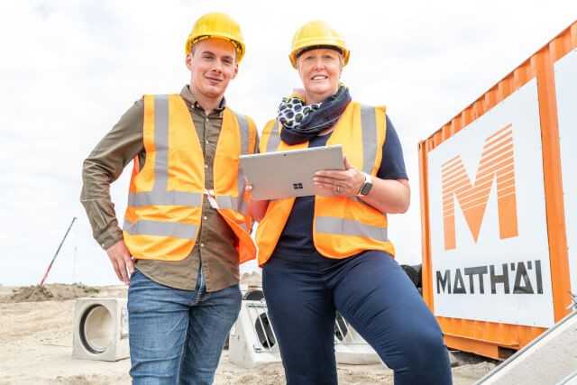 Nach erfolgreicher Einführung der Lösung in einer Unternehmenssparte im Jahr 2018, entschied man sich, dies konzernweit auf allen Baustellen anzuwenden. Neben der umfangreichen Funktionalität sind die größten Vorteile für die Mitarbeiter bei Matthäi die einfache Benutzerführung und die Offline-Datenerfassung. Normalerweise schickt die App die eingegebenen Daten direkt per Funk an die Office-Anwendung – ohne Funkverbindung werden die Daten dennoch offline gespeichert und automatisch übertragen, sobald der Empfang wieder funktioniert.