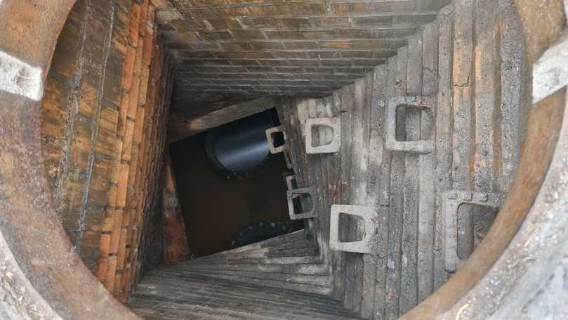 Zunächst waren durch die Firma Wähler am Dükeroberhaubt einige Umbaumaßnahmen auszuführen. Der Einstieg mit einem Durchmesser von 60 Zentimetern und der Dom bis herunter zur Schachtkammer mussten geöffnet werden, um die Voraussetzungen für den Einbau der beiden 1000er Liner zu schaffen.