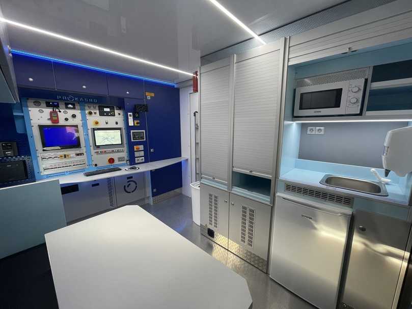 Zum anderen können die Operateure dank der dualen Stromversorgung über ein zusätzliches Batteriepack die Anlage ohne Generatorbetrieb starten und alle im Sozialbereich der Anlage enthaltenen Geräte wie Kaffeemaschine, Mikrowelle, Radio oder Strom zum Handyladen ohne Geräusch- und Abgasbelästigung nutzen. Erst für die eigentliche Aushärtung auf der Baustelle und den Betrieb von Kasro UV-Lampen, Kasro UV-Trommel und Verdichter muss der Generator eingeschaltet werden. Als weiteres Highlight erfolgt die Ladung des Batteriepacks direkt über eine auf dem Dach des LKWs installierte Solarstromanlage. Eine Win-Win-Situation also für den Anwender und die Natur.