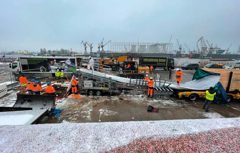 Die gesamte Sanierungsmaßnahme blieb exakt im Rahmen der vorgegebenen acht Wochen, obwohl es durch den Wintereinbruch im Februar noch zu einer 1 wöchigen Verzögerung kam, da dem Schwertransport mit einem Gesamtgewicht von 90 Tonnen von Rohrbach nach Hamburg wegen der Schneeglätte in den Kasseler Bergen die Transportgenehmigung nicht erteilt worden war.